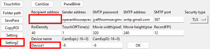 TouchOffTIme(s): パネルをタッチした直後にROIを不活性化させる時間(秒)。罰等で急にチャンバー内が明るくなるとROIが誤検出する可能性があるので一時的に検出を向こうにする機能です。